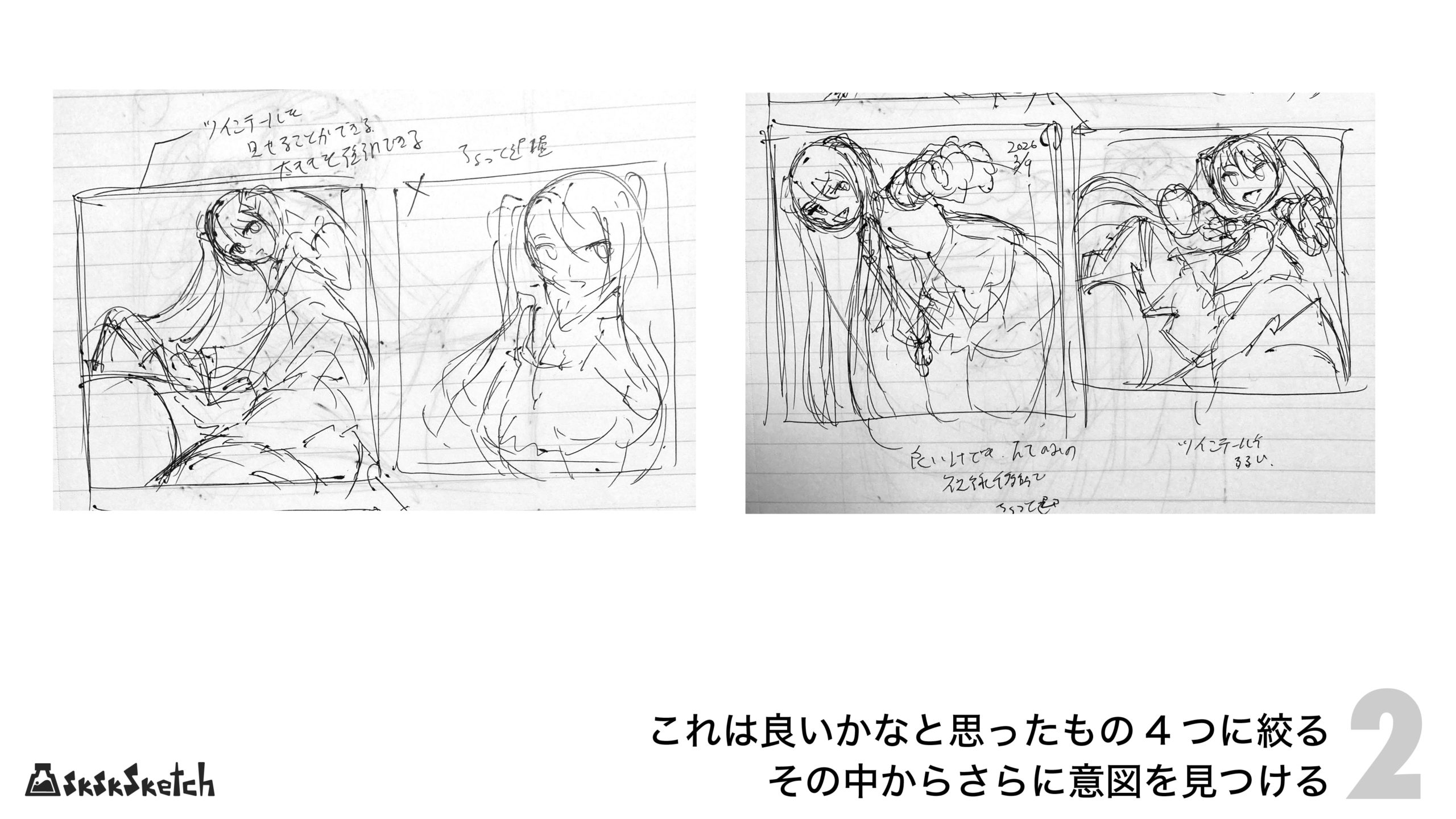 ここ数日のワンドロではフォームの崩れを感じたので、ややじっくりと描くものに向き合う手順にしてみました。