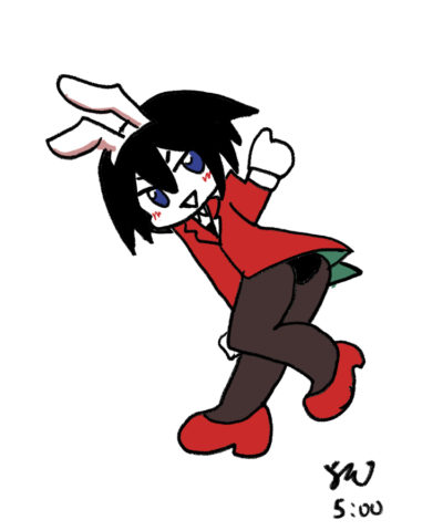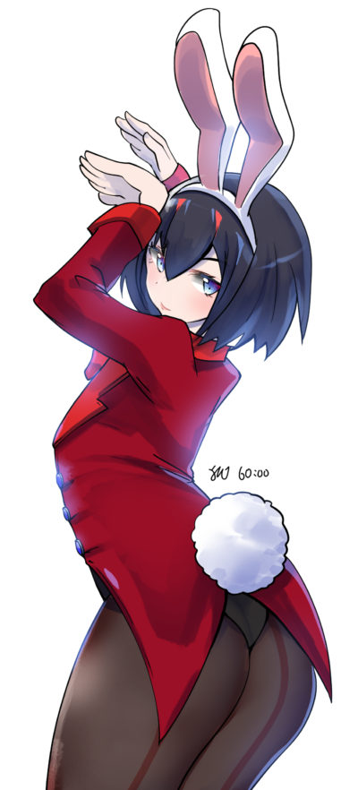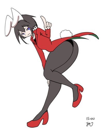 最初に描いた15分版、5分版のポーズ準拠で60分版を描こうと考えていたものの、60分版の品質を考慮するとある程度描き慣れた箇所までトリミングするのが良かろうということで、60分版だけポーズを変えました。せめてもの工夫として「手でウサ耳のマネをする」というある程度説得力のある動きを入れています。